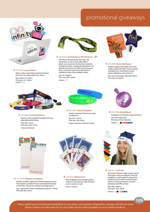 Unless stated, prices include personalisation in one colour, one position. Origination, carriage and VAT are extra.