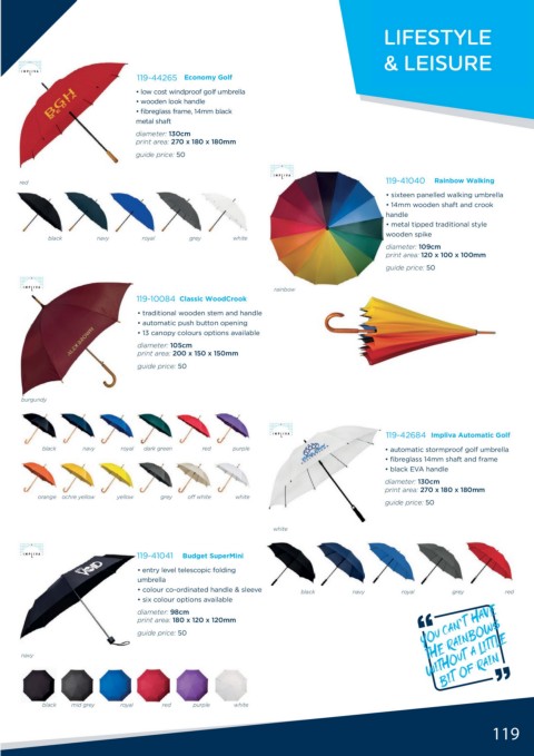 is subject to an additional charge • stormproof ribs guide price: 50 THE RAINBOWS