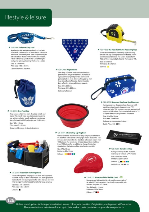 Unless stated, prices include personalisation in one colour, one position. Origination, carriage and VAT are extra.