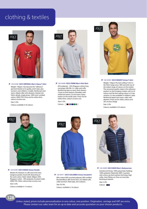 128-42586 SOL'S IMPERIAL Men's Heavy T-shirt 128-43698 SOL'S PRIME Men's Polo Shirt Weight: 150gsm.The best-selling T-shirt in