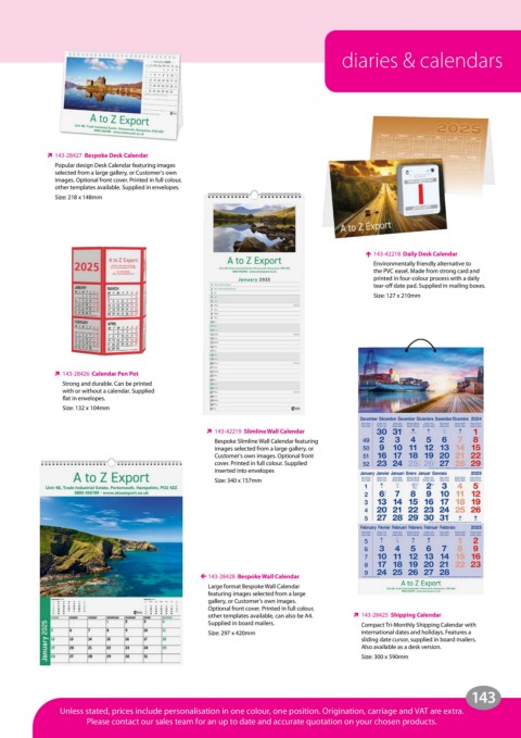 other templates available, can also be A4. 143-28425 Shipping Calendar