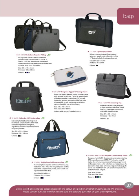 Unless stated, prices include personalisation in one colour, one position. Origination, carriage and VAT are extra.