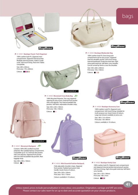 Colours: 41-44543 Mini Essential Fashion Backpack 41-44502 Boutique Vanity Case