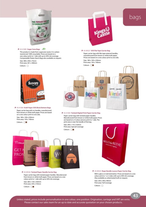 from brown or white kraft paper. Prices are based 43-41003 Twisted Digital Print Paper Carrier Bag
