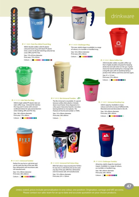 Unless stated, prices include personalisation in one colour, one position. Origination, carriage and VAT are extra.