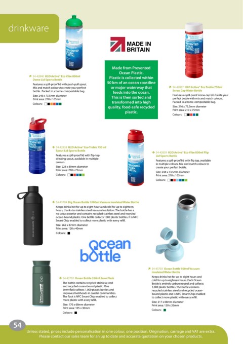 Mix and match colours to create your perfect   or major waterway that    54-42837  H2O Active® Eco Treble 750ml