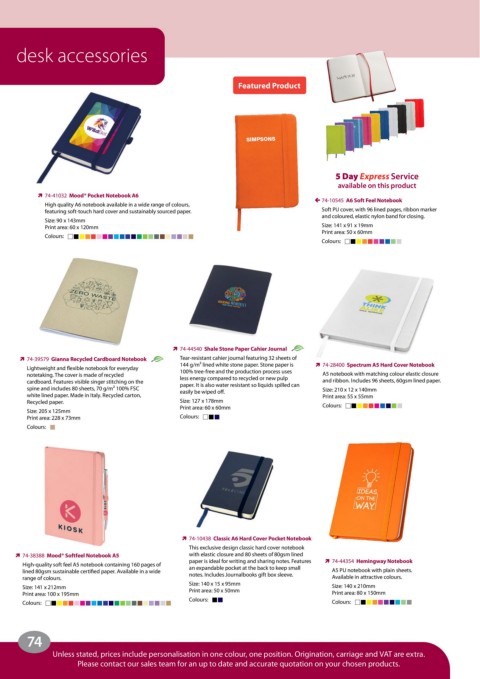 Unless stated, prices include personalisation in one colour, one position. Origination, carriage and VAT are extra.