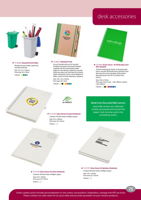 Unless stated, prices include personalisation in one colour, one position. Origination, carriage and VAT are extra.