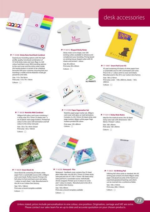 A7 & A8 sticky notes and neon flags in a full sheets and printed 1 colour.
