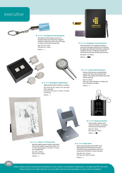 Unless stated, prices include personalisation in one colour, one position. Origination, carriage and VAT are extra.