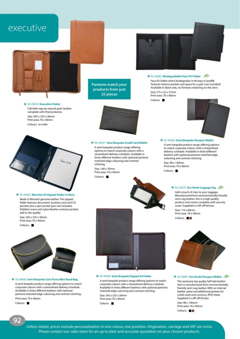 corporate colours with a streamlined delivery schedule. Available in three different leathers with optional pantone friendly semi-veg leather. With an internal