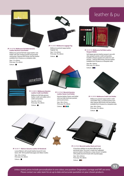 Print area: 70 x 30mm Size: 100 x 72mm side. Features RFID lining. Anti bac leather