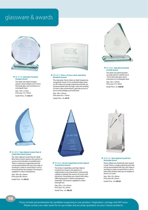 wording to create an award that is sure to The 20.5cm Cobalt Blue and Clear Optical can be personalised with any crest, logo or