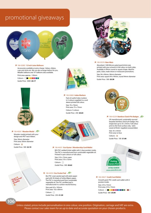 Unless stated, prices include personalisation in one colour, one position. Origination, carriage and VAT are extra.