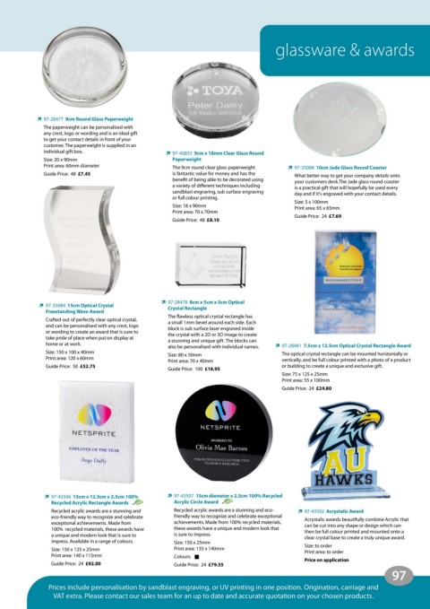 Prices include personalisation by sandblast engraving in one position. Origination, carriage and VAT extra.
